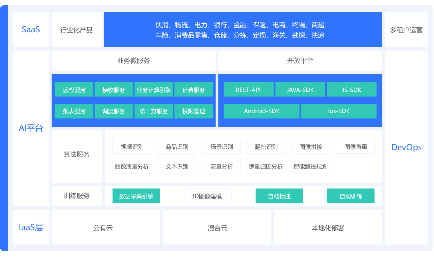 玄武云AI平台是玄武云自主研发的、基于云计算原生技术,专注计算机视觉方向的专业AI平台,包括应用层、平台层、Paas层、IaaS层,由能力引擎、算法平台、学习框架平台共同构成,可实现AI能力、算法、模型的封装及核心能力的复用沉淀,帮助企业按照需求快速、高效地实现AI解决方案。
