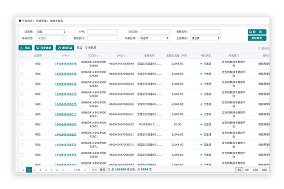 1.可查询和导出全部的物联卡业务信息数据