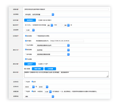 • 多维监控除支持流量资费监控外,同时支持业务状态、位置信息、机卡分离告警。